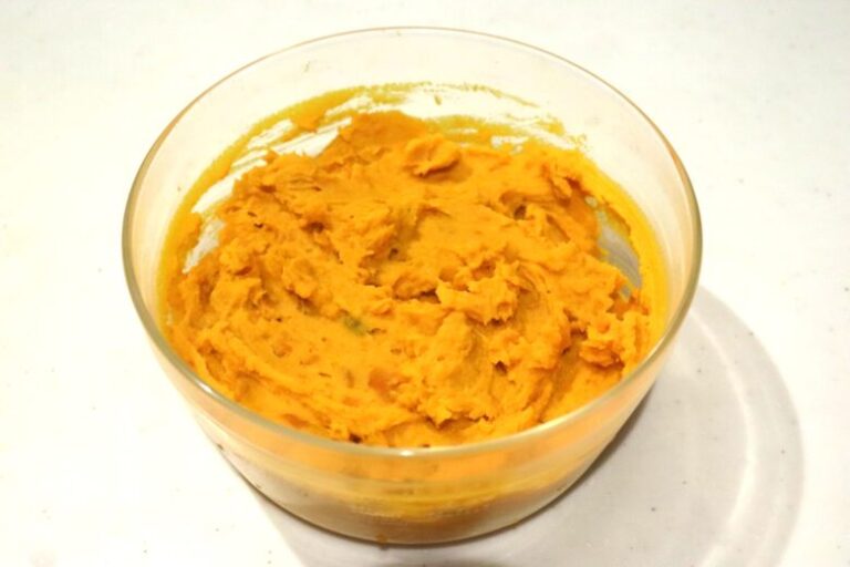 ③Place the pumpkin(②) into a bowl and mash with a potato masher. Add all of (B) and mix well until evenly combined.