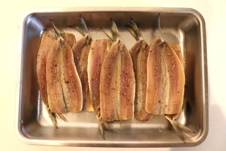 ①Pat the sardines dry with paper towels and place them in a tray. Rub in (A), then let them rest in the refrigerator for around 15 minutes.