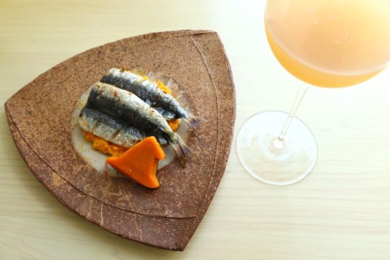- グリルしたイワシのほろ苦味には、レモンピールを想わせるような爽やかで心地よい苦味を持つスワインを合わせたい。