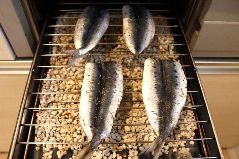 ④Place the sardines(①) on the grill rack skin-side up. Grill over medium heat for 4–5 minutes on each side, until nicely browned. Once the skin is browned, flip and cook the other side for another 4–5 minutes over medium heat.